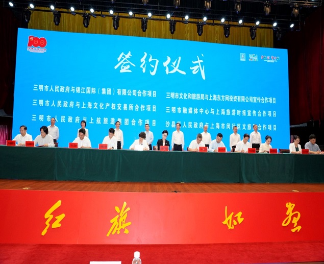 2021年6月18日,集团在沪闽(三明)旅游合作对接会上与三明市人民政府正式签署合作协议。签约后仅一周时间,集团旗下5A级旅行社上航假期于当年6月27日组织了上海市首批劳模疗休养团前往三明清流,自此开始,相隔八百多公里的沪明两地文旅互通“连心桥”架起。
