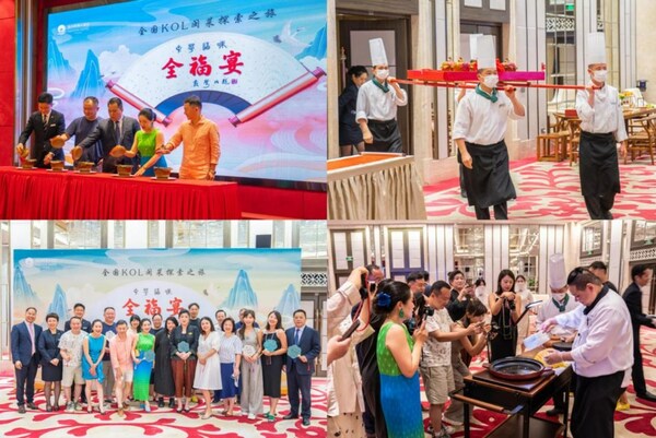 活动当晚,伴随弦乐声起,4位厨师抬着"闽菜之王"佛跳墙隆重进场,绕桌一圈,主人敲响"福锣",嘉宾"揭福"坛起荤香飘四邻,在榕城厚重文化中,品味经典闽菜,感受山海和鸣。海宝佛跳墙、红茶焗宁德牙城蟳、脆皮八宝酿长汀河田鸡、椰香五夫莲子羹等菜品,彰显酒店厨师团队对闽菜的传承与创新。福州西湖大酒店也将持续打造"全福宴",以高服务质量、高出品要求,塑造"有福之州"金字招牌。