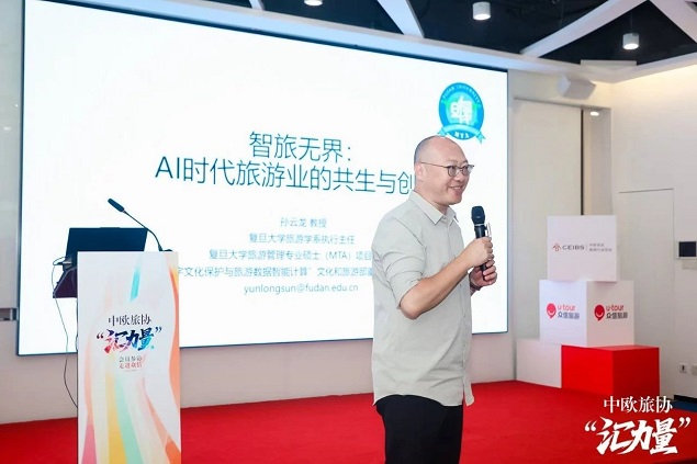 上海复旦大学旅游学系主任孙云龙教授、博士以“智旅无界:AI时代旅游业的共生与创变”发表主题演讲。他表示,“我与众信旅游结缘已久,众信旅游作为我走出校园第一次调研的旅游企业,为我打开了了解整个旅游行业的大门。十分荣幸有机会跟随中欧旅协再次到访众信旅游,我感到十分亲切亦感慨。在时代变迁下,人们的生活方式发生了巨大的变化,这些变化进一步影响了旅游市场。阔别九年,我发现众信旅游依旧作为行业龙头企业持续引领行业发展,并通过AI、VR等智能化手段为行业注入新的活力,我感到无比欣慰,也再一次让我感受到了旅游行业的韧性与活力。”此外,孙教授也通过案例分享进一步为在场会员带来了前瞻性的行业分析与AI时代下旅游行业创新发展的新理念。