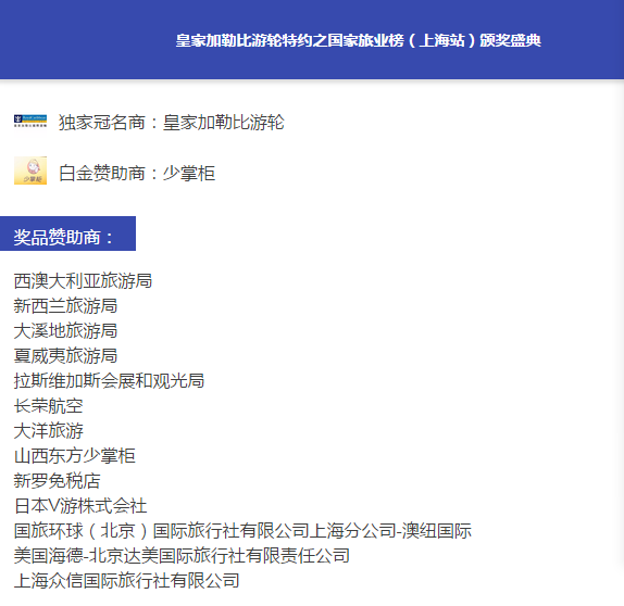 第12届国家旅业榜(上海站)颁奖盛典完全榜单