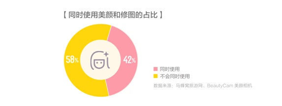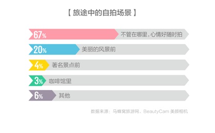 旅行让人置身于全新的陌生场景之中,这往往激发出人们更大的拍照兴趣。马蜂窝与BeautyCam美颜相机的数据研究发现,68%的人在旅途中会使用各类APP拍照,而非手机自带相机;更有42%的会使用一个以上的软件修图,修图时间在30分钟以上的人占到20%。
