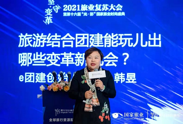 在下午的变革环节中,e团建创始人&CEO韩昱向现场嘉宾分享了《旅游结合团建能玩儿出哪些变革新机会》的主题演讲。我们摘取了部分内容与业者分享。