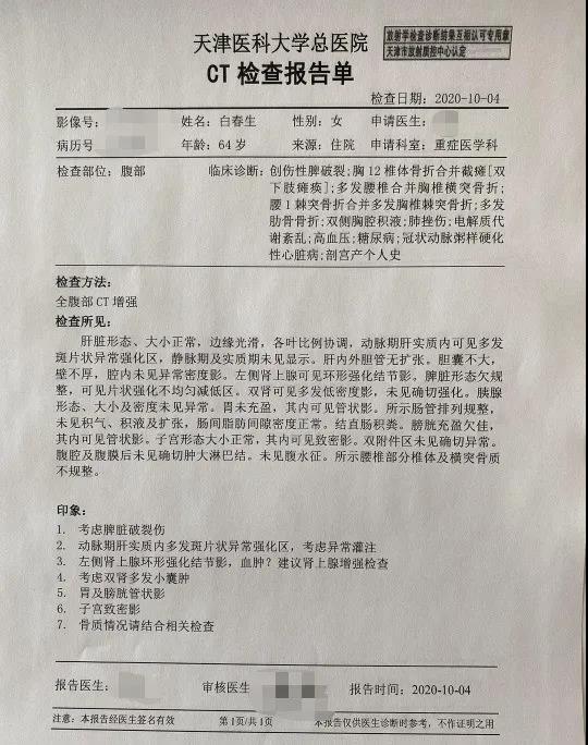 张某告诉记者,母亲受伤比较重,事故发生后就被送进了天津医科大学总医院的ICU接受治疗。“前段时间已经从ICU出来了,但是状态还是不好,医生说胸椎骨折,后面能不能站起来都是个问题。”