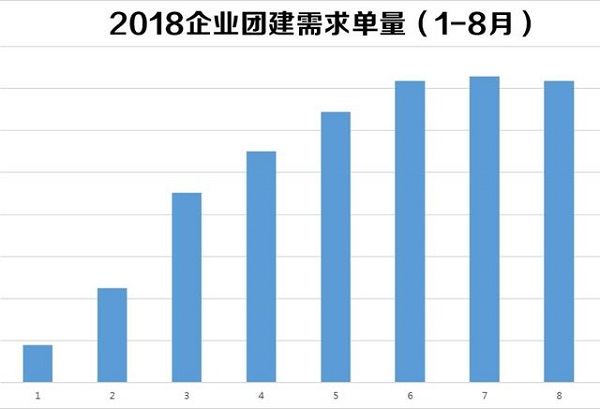 报告显示,2018年上半年,企业定制需求单量同比增长达200%,团建定制占整个企业定制的15%,团建人均消费比去年增长15%。互联网行业公司的团建比例最高,上海企业在全国排名第一。