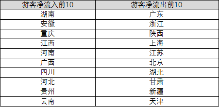 受务工人员返乡探亲游的影响,劳务输出较大的省份客源产出。其中,客源产出排名前10的省域包括:1、广东 2、江苏 3、陕西 4、四川 5、山东 6、湖北 7、浙江 8、河南 9、湖南 10、广西。
