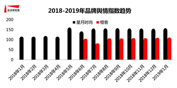 除了潜在客群的关注,在反映实际客群消费方面的舆情指数上,本月表现突出的两个品牌是星月时尚与橙客,两者1月舆情指数分别为157.96和111.2,环比上月分别提升1.56%和0.89%。