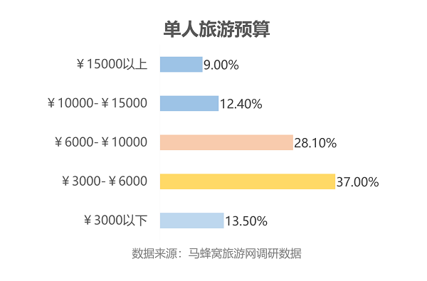 在旅行花费上,“十一”出行的一线城市白领人群,人均预算近7000元,其中预算在3000元至6000元之间的占比最大,比例为37%;其 次是6000元至10000元区间,占比28%。马禹涛表示,“一线城市白领的出游预算普遍较高,因为他们对住宿和餐饮的品质要求更高,也更愿意花钱体验目的地的特色玩法”。