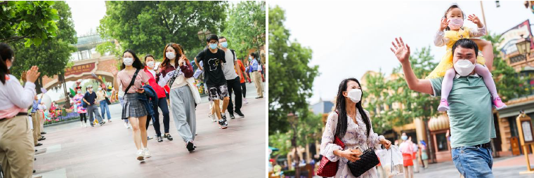 游客遵循全新强化的乐园安全和健康举措。