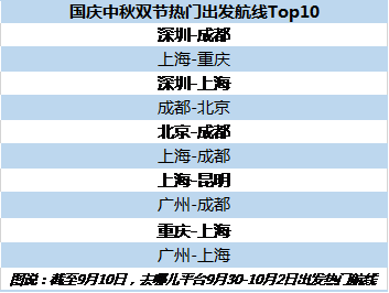 酒店预订热度同样在出行上得以体现。去哪儿平台数据显示,目前国庆假期机票预订量已经超过去年同期的九成。北上广深的游客更早预订出行机票。截至9月10日,国庆假期热门出游航线Top10中,8条航线出发地为北上广深。