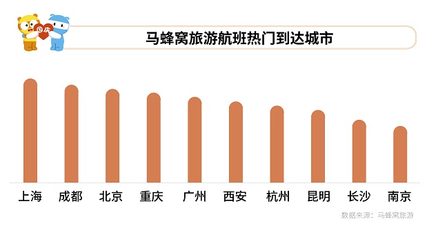 8天的国庆黄金周里,哪些城市最受游客欢迎?马蜂窝旅游大数据显示,航班热门到达城市前五名分别是上海、成都、北京、重庆和广州。这些城市具有众多著名景区,以及具有新网红潜力的小众景点。在此前马蜂窝发布的《“后疫情时代”攻略:发现中国新秘境》中,上海的青西郊野公园、成都的丹景山、北京的红井路、广州的大观湿地公园等都是在疫情期间被游客挖掘出来的新兴景区景点。