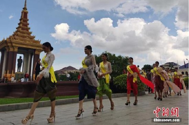 资料图:9月下旬,随着柬埔寨国内疫情形势趋于平稳,柬埔寨旅游业开始复苏。图为柬埔寨佳丽在金边参加一场活动为当地旅游宣传。 中新社记者 欧阳开宇 摄