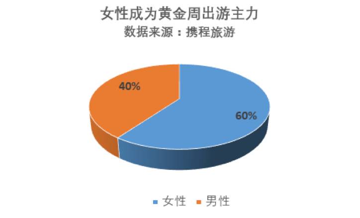 女性成为黄金周出游主力,黄金周预定携程跟团游、自由行、邮轮、当地玩乐等产品出游的游客,60%是女性。