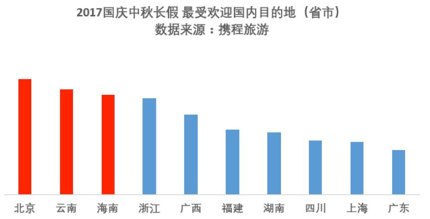 从客源地人均消费来看,2017年十一黄金周,通过携程预订跟团游、自由行产品,国内游人均费用超过3000元,出境游人均超过9000元。