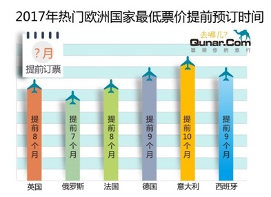 赴英国提前8个月、赴俄罗斯提前7个月、赴法国提前8个月、赴德国提前9个月、去意大利提前10个月、去西班牙提前9个月订票最便宜。