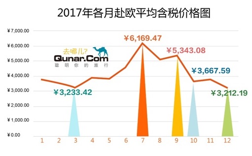 一般来说,暑期、十一、圣诞节、春节是国人赴欧机票价格的高峰。
