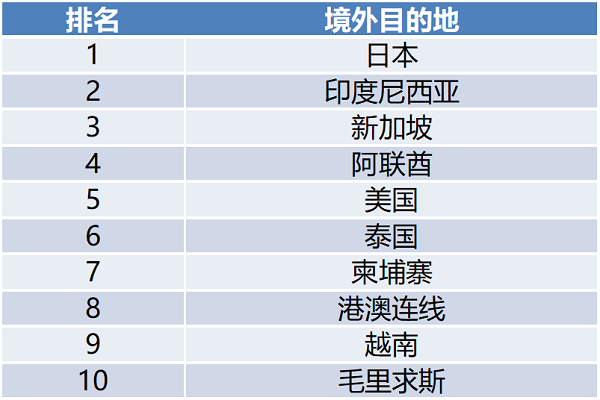 出境跟团游目的地排行榜:泰国日本最受欢迎 从大城市扩散到小众目的地