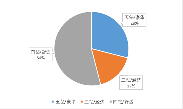 《报告》显示,选择携程4、5钻级跟团游产品的用户比例高达83%,选择3钻的比例不到20%。八成跟团游客选择高星级住宿。